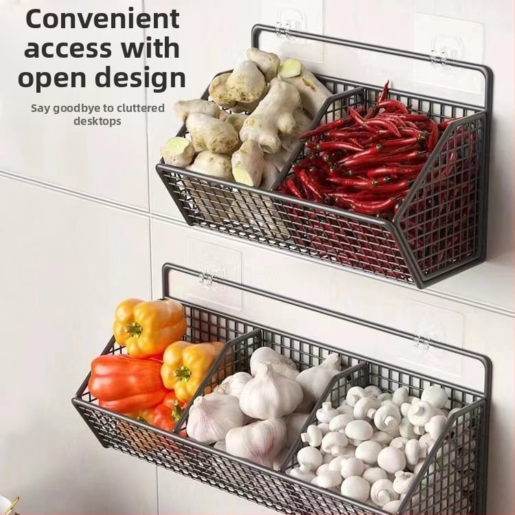 Skalūnų, imbiero ir česnako laikymo krepšelis virtuvei, sieninis česnako laikymo krepšelis, imbiero ir česnako laikymo lentynėlė, sieninė maisto dėžutė, artefaktas